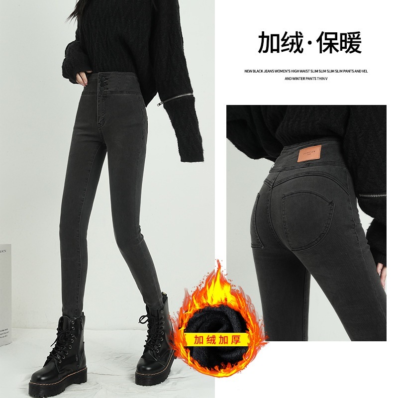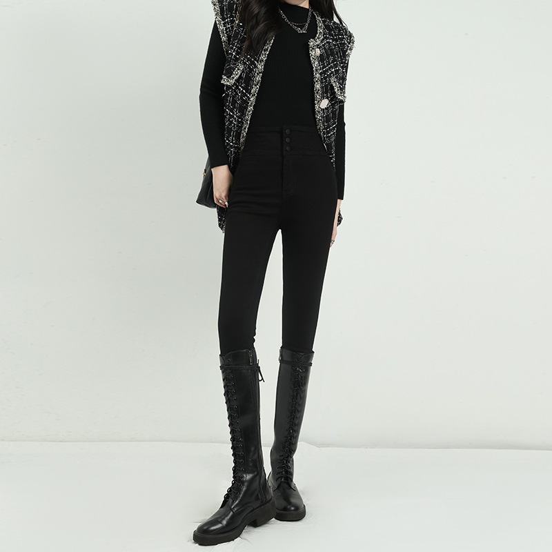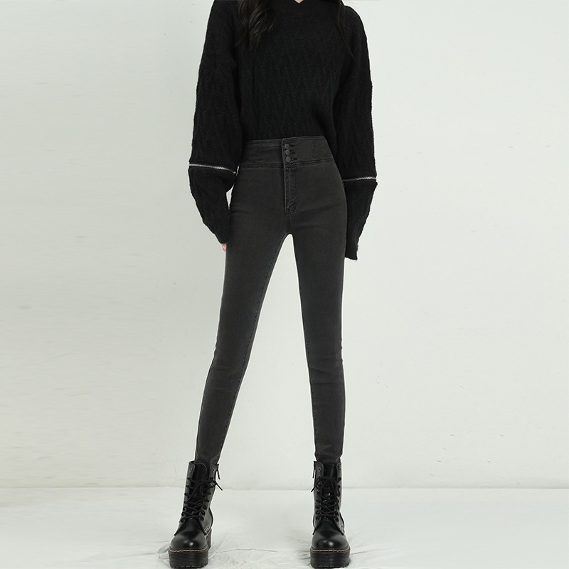 アメリカンハイストリートのホットガールストレッチスキニージーンズ女性用ハイウエストスリムフィットスリミングニッチオールマッチペンシルパンツ