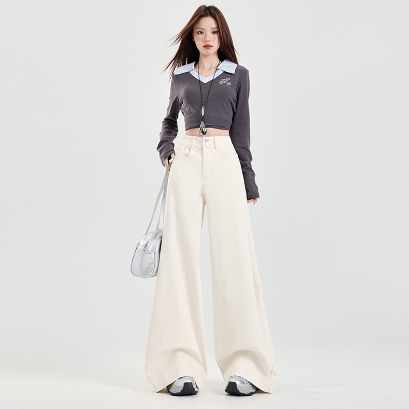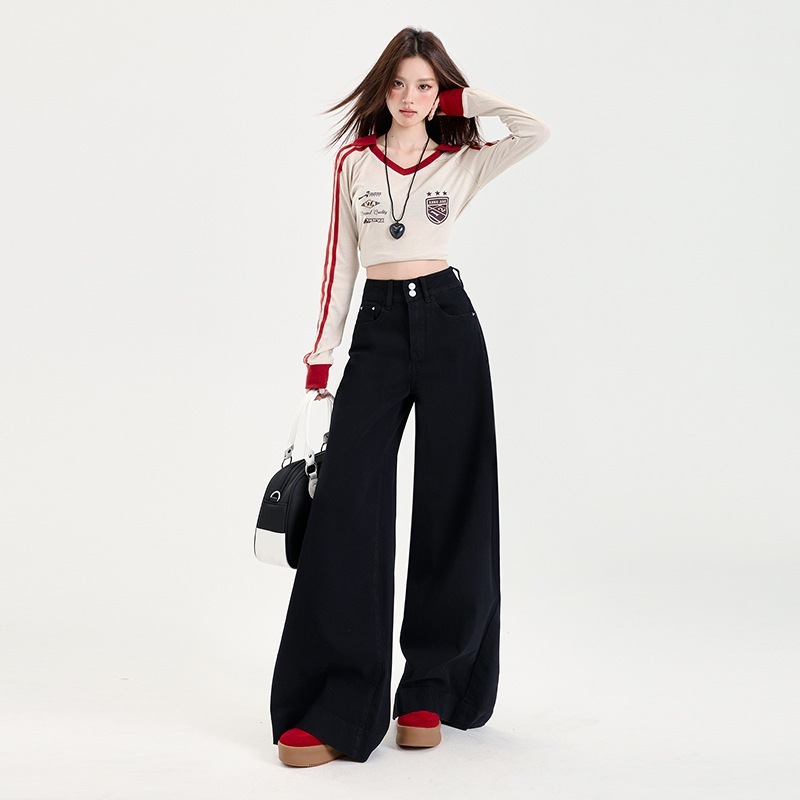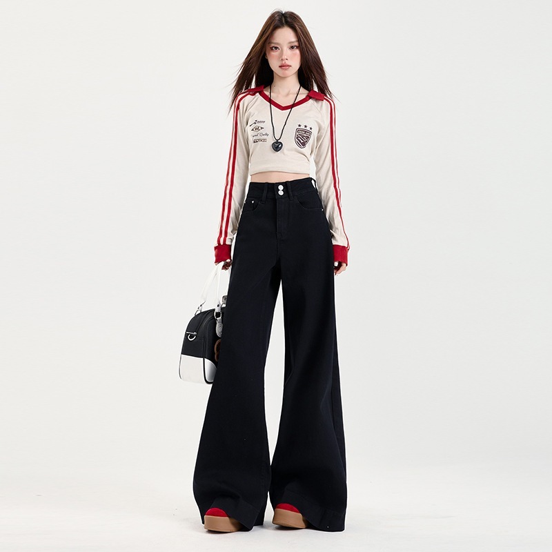 女性用黒の高級ノンスティックフレアジーンズハイウエストゆったりスリミングファッショナブルオールマッチフロアレングスパンツ