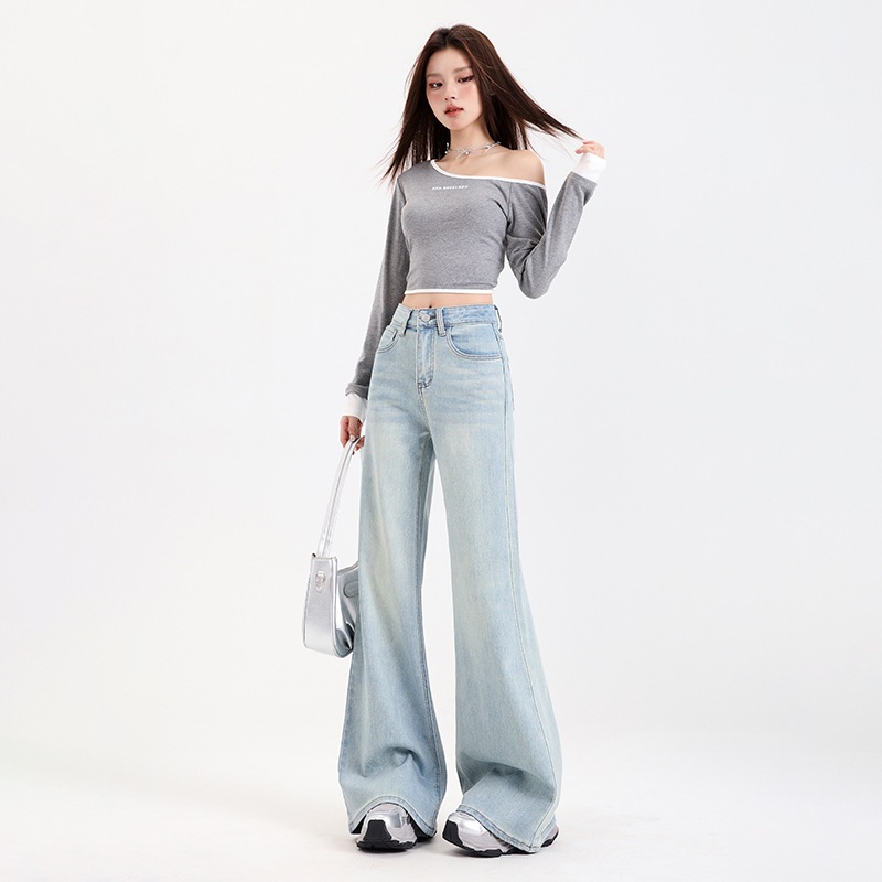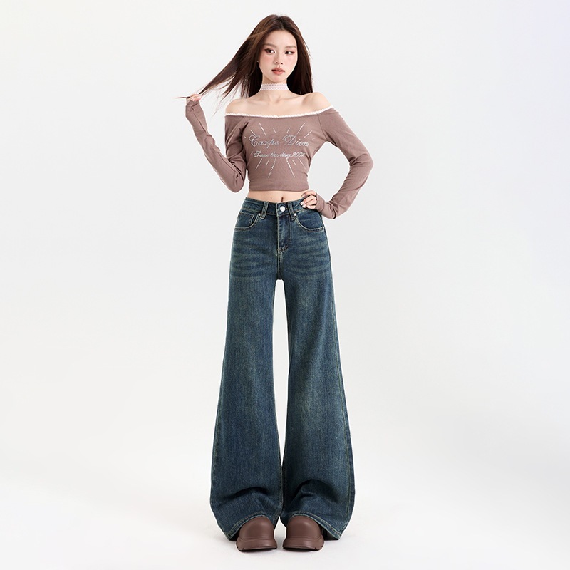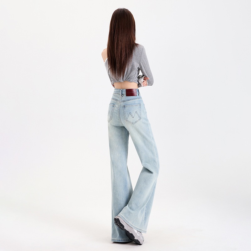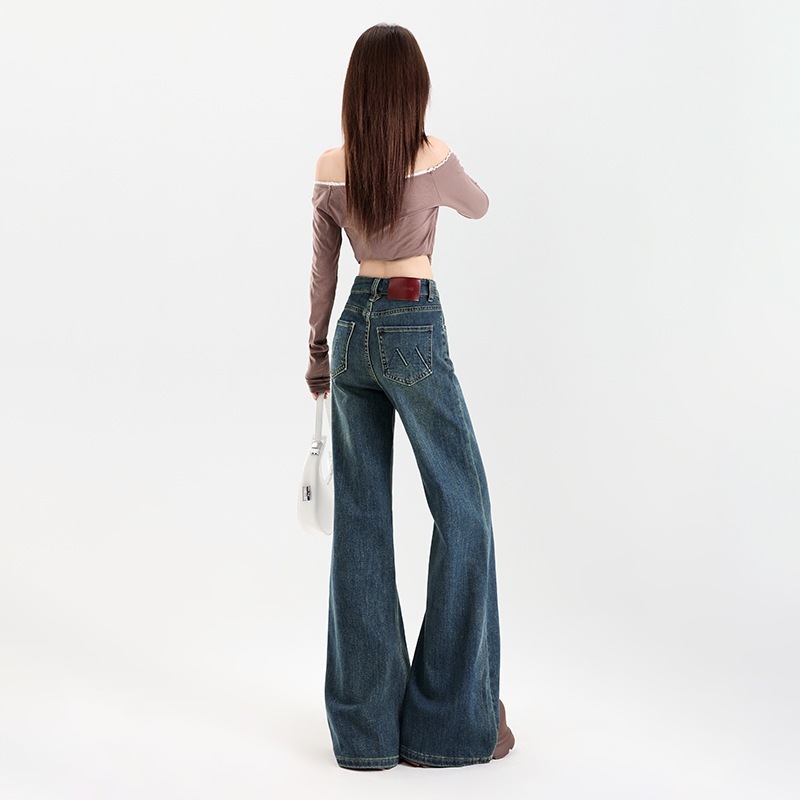 レトロでべたつかないフレアジーンズ女性用ハイウエスト伸縮性スリミングファッショナブル万能フロアレングスホースシューパンツトレンディ