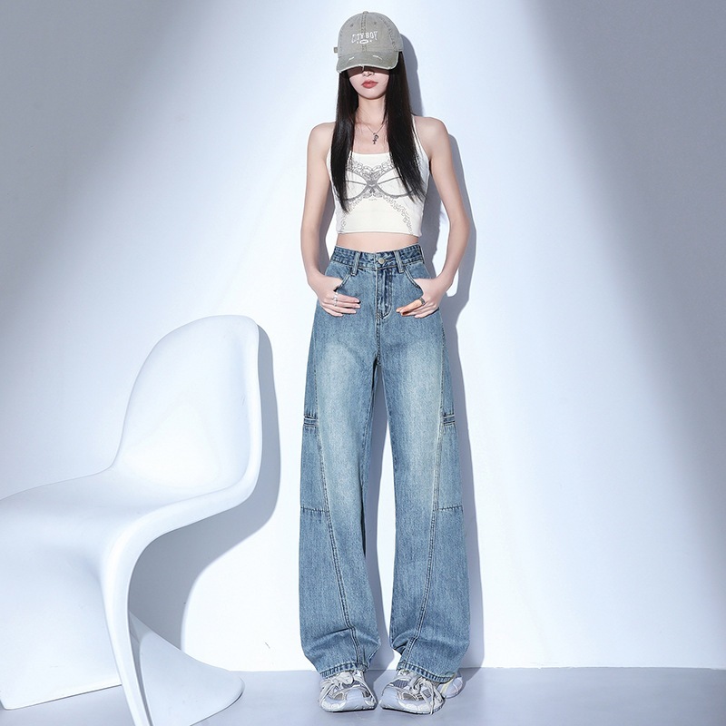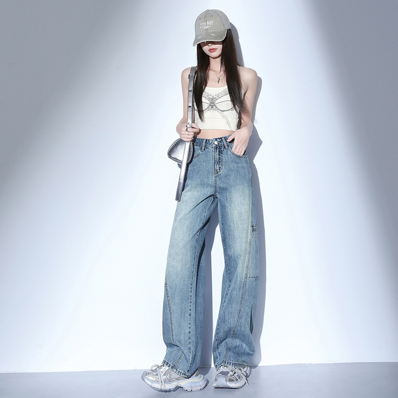 アメリカのハイストリートのホットガールワイドレッグワークウェアジーンズ女性用ゆったりスリムデザイン万能なフロアレングスのズボン