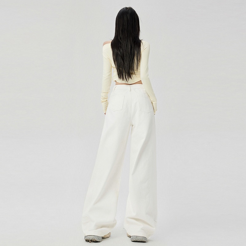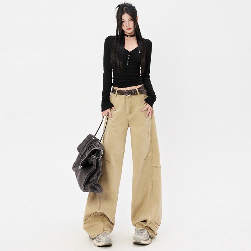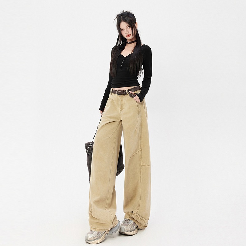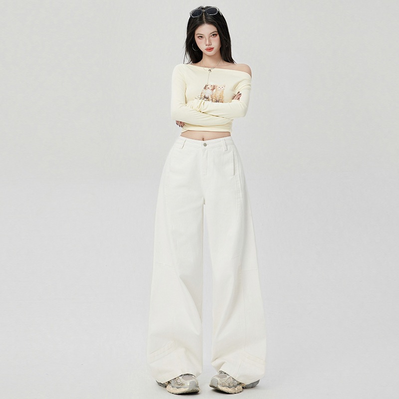 女性用のシンプルなゆったりワイドレッグジーンズハイウエストでスリミングヒップカバーデザインカジュアルで万能なシミターパンツ