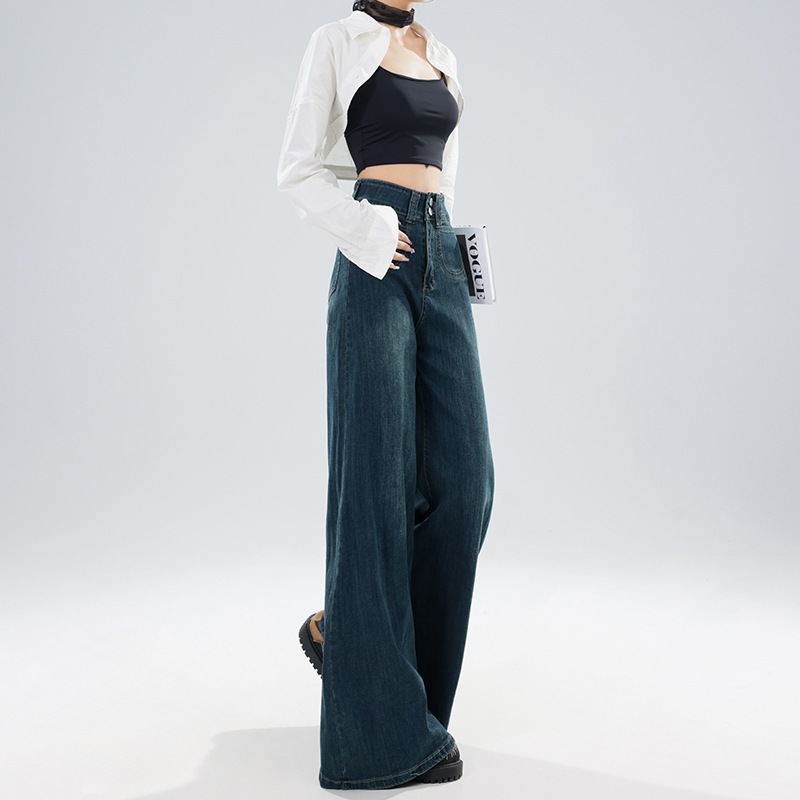 アメリカンレトロ気質のワイドレッグジーンズ女性用ハイウエストゆったりスリミング肉をカバーお腹を引き締め万能モップパンツ