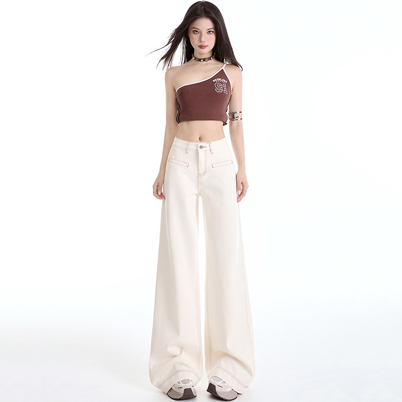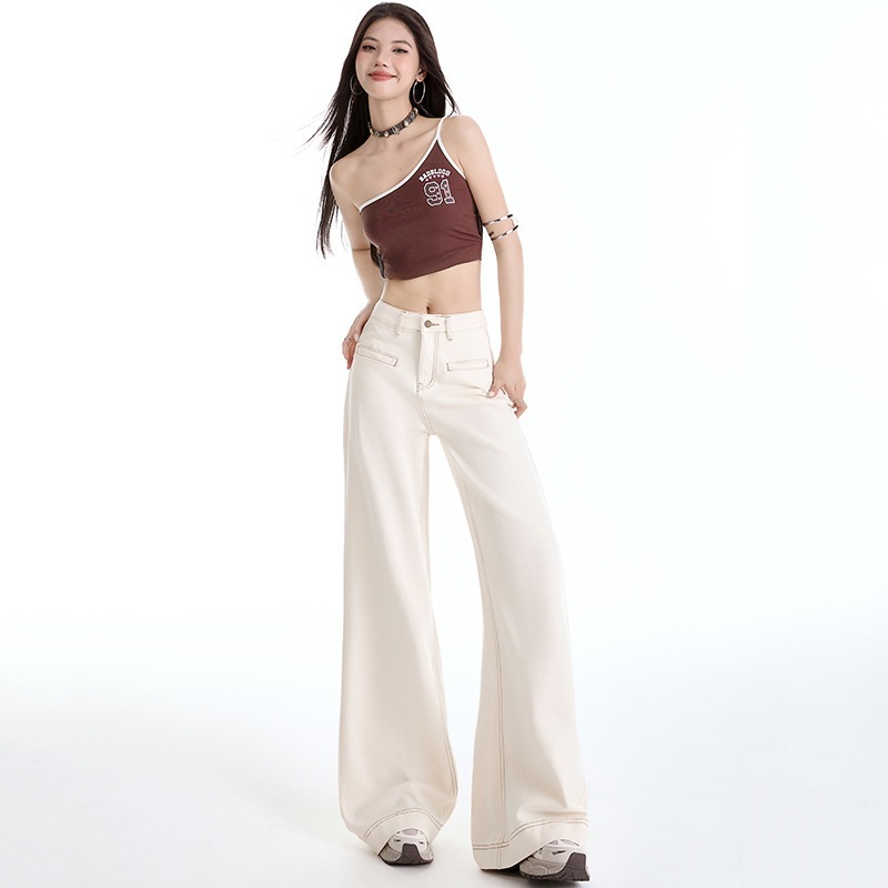 パンツ アプリコット色のレディース ジーンズゆったりとしていてスリムでファッショナブル万能なフロアレングスのシミター ワイドレッグ