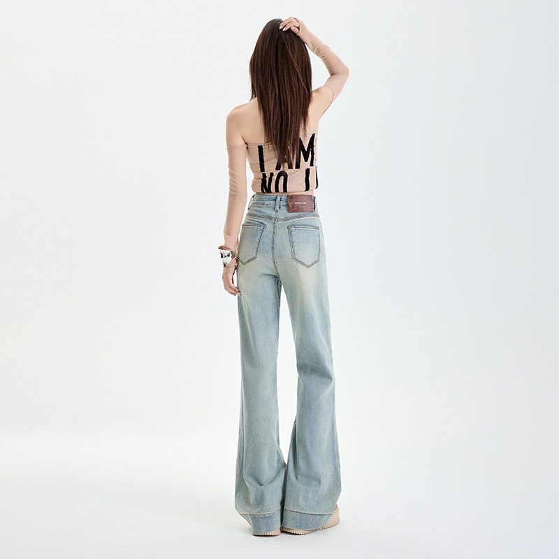 韓国のホットガール女性用スリムフィットヒップアップ万能なフロアレングスパンツべたつかない伸縮性のあるフレアジーンズ
