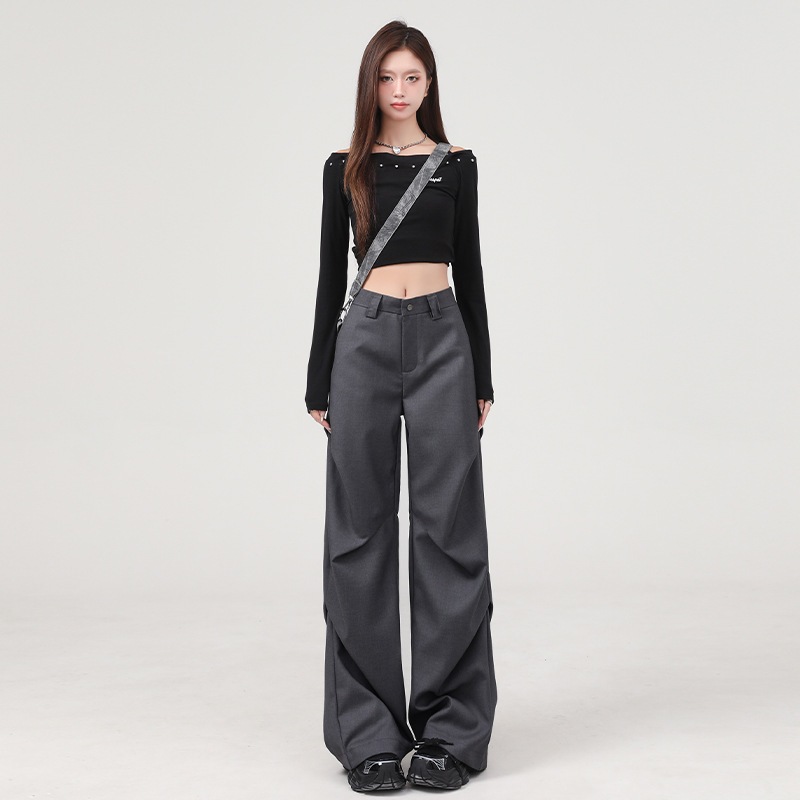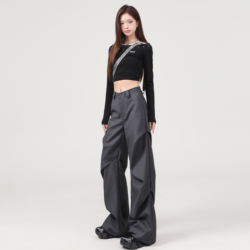 プリーツデザインニッチハイエンドワイドレッグスーツパンツレディースルーズスリム気質万能カジュアルパンツトレンド