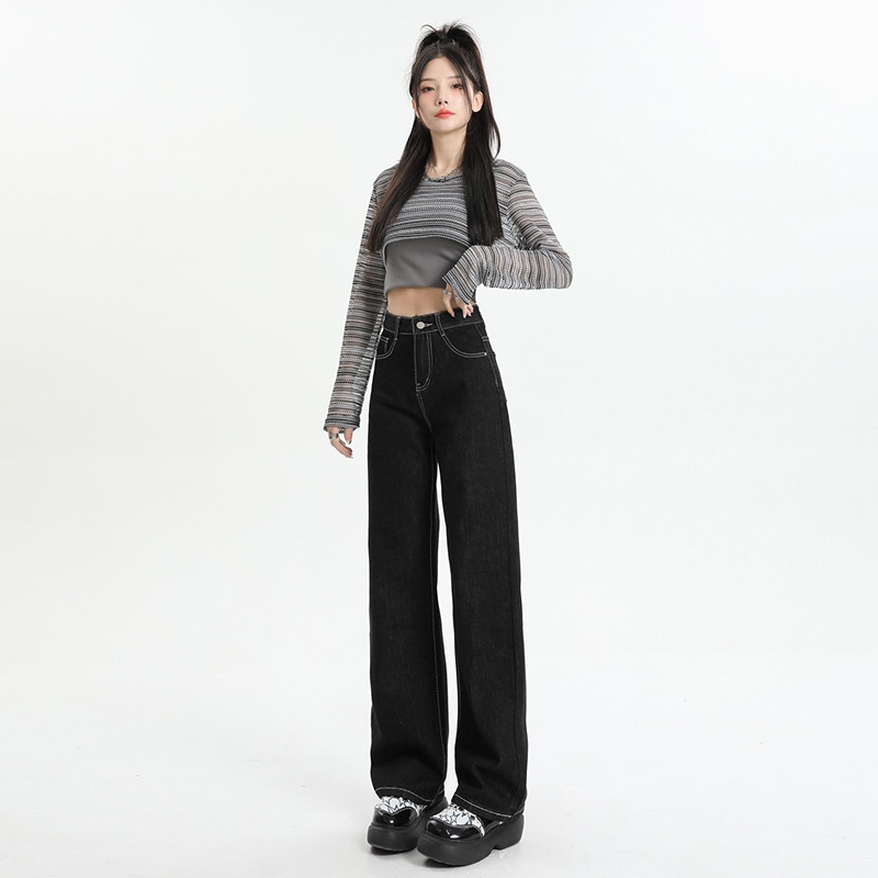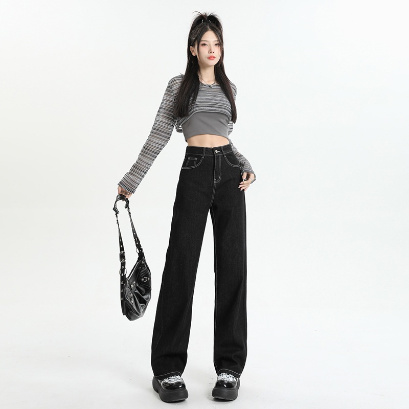 スモールオールマッチナローバージョンワイドレッグジーンズレディース2025ハイウエストスリムストレートパンツトレンディ
