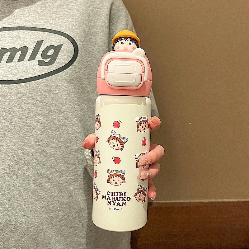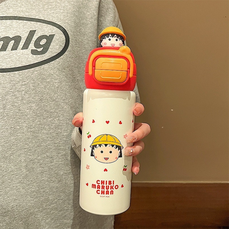 ちびまる子ちゃん子供用保温カップ316ステンレス製ホット女子小学生通学用ストロー付きコップ