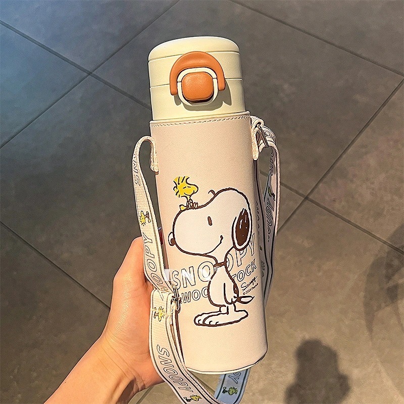 スヌーピー子供用保温カップストロー付き食品級316ステンレス学生携帯コップ大容量