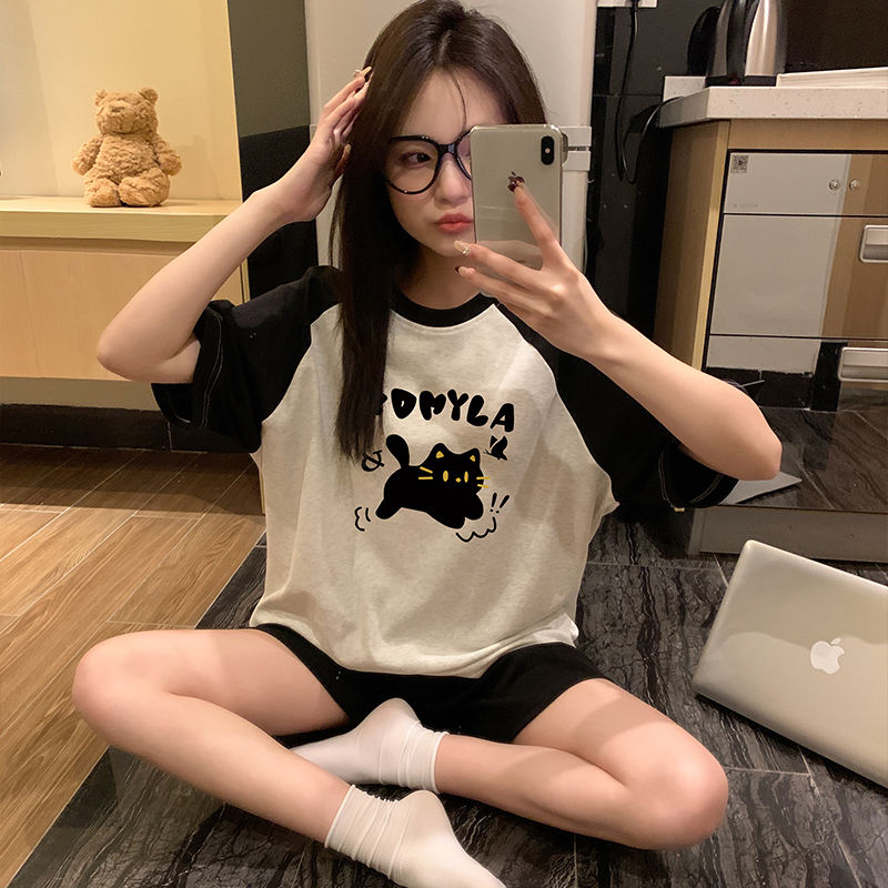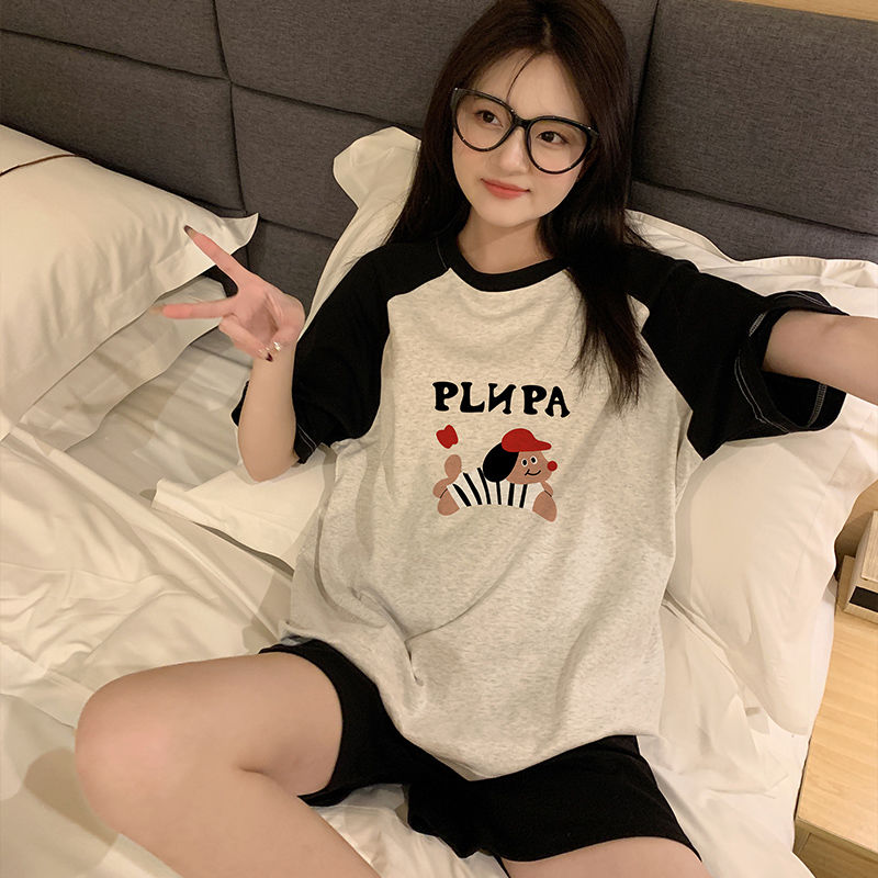 夏の半袖ショートパンツ 漫画 ルームウェアセット パジャマ 前開きパジャマ ルームウェア パジャマ レディース パジャマ 夏 パジャマ 韓国