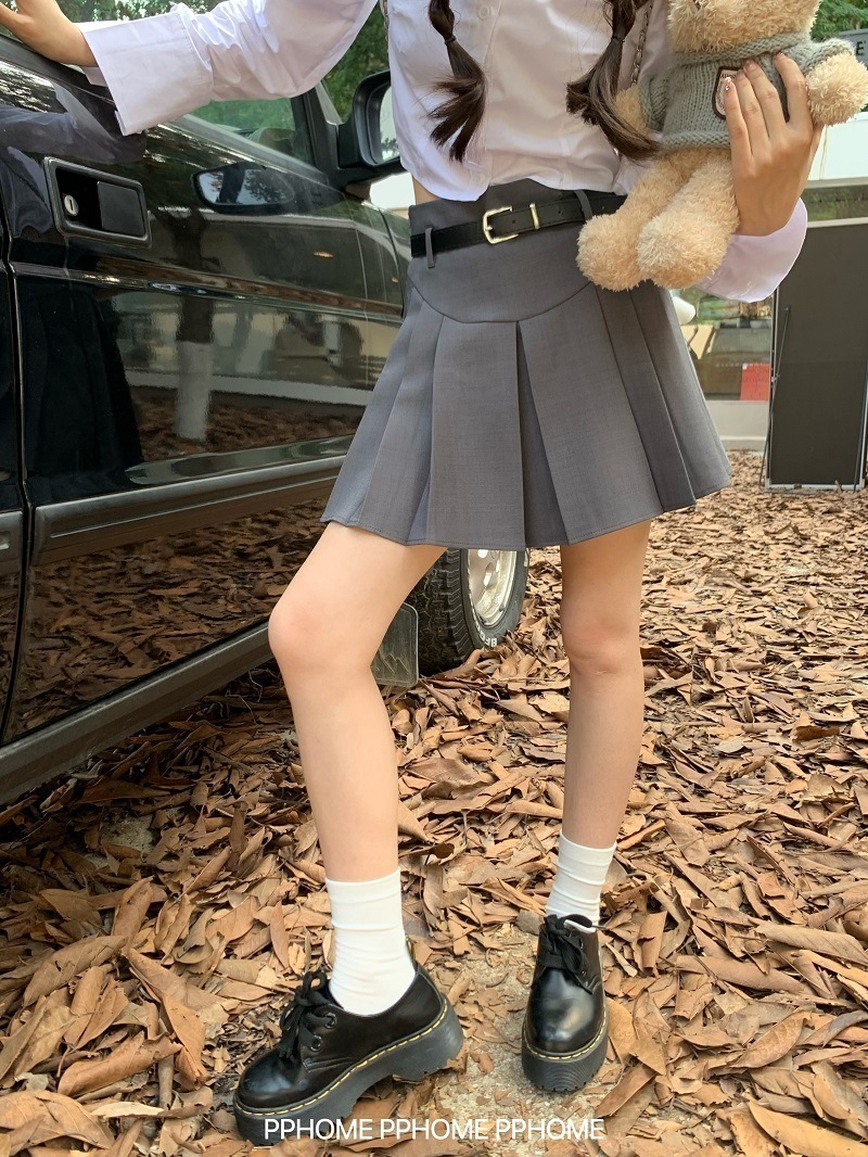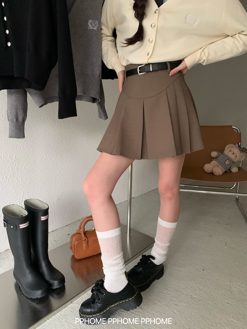 秋冬 スカート ミニ丈 ハイウエストベルト付き 高校生 学生 脚長効果 美脚効果 細見え かわいい風 おしゃれ キュート フレンチ 甘め カジュアル春黒白系ファッションレディ