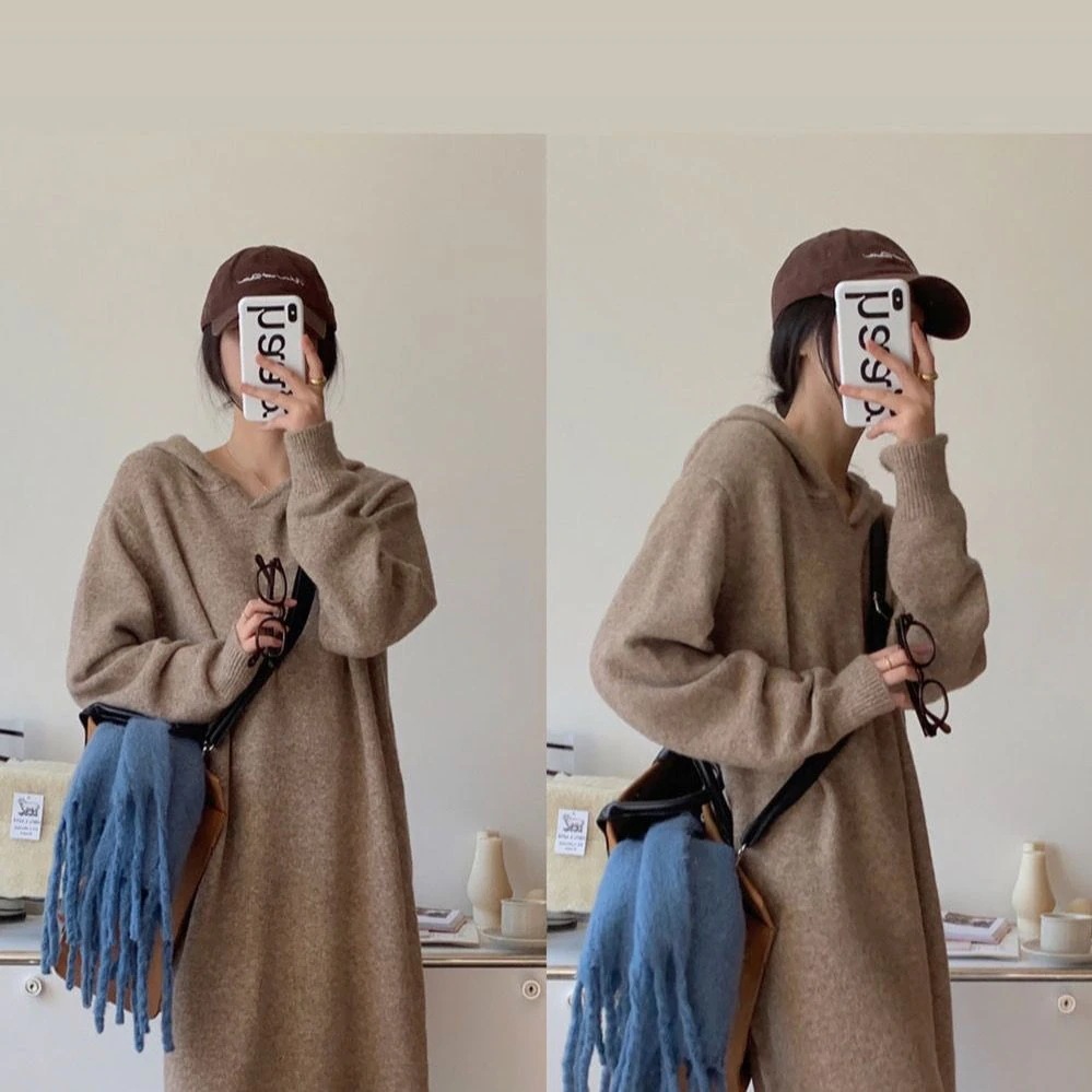 秋冬新追加 ジャンパーセーターのドレス内の緩いレジャーのフード付きドレス新しいバージョン
