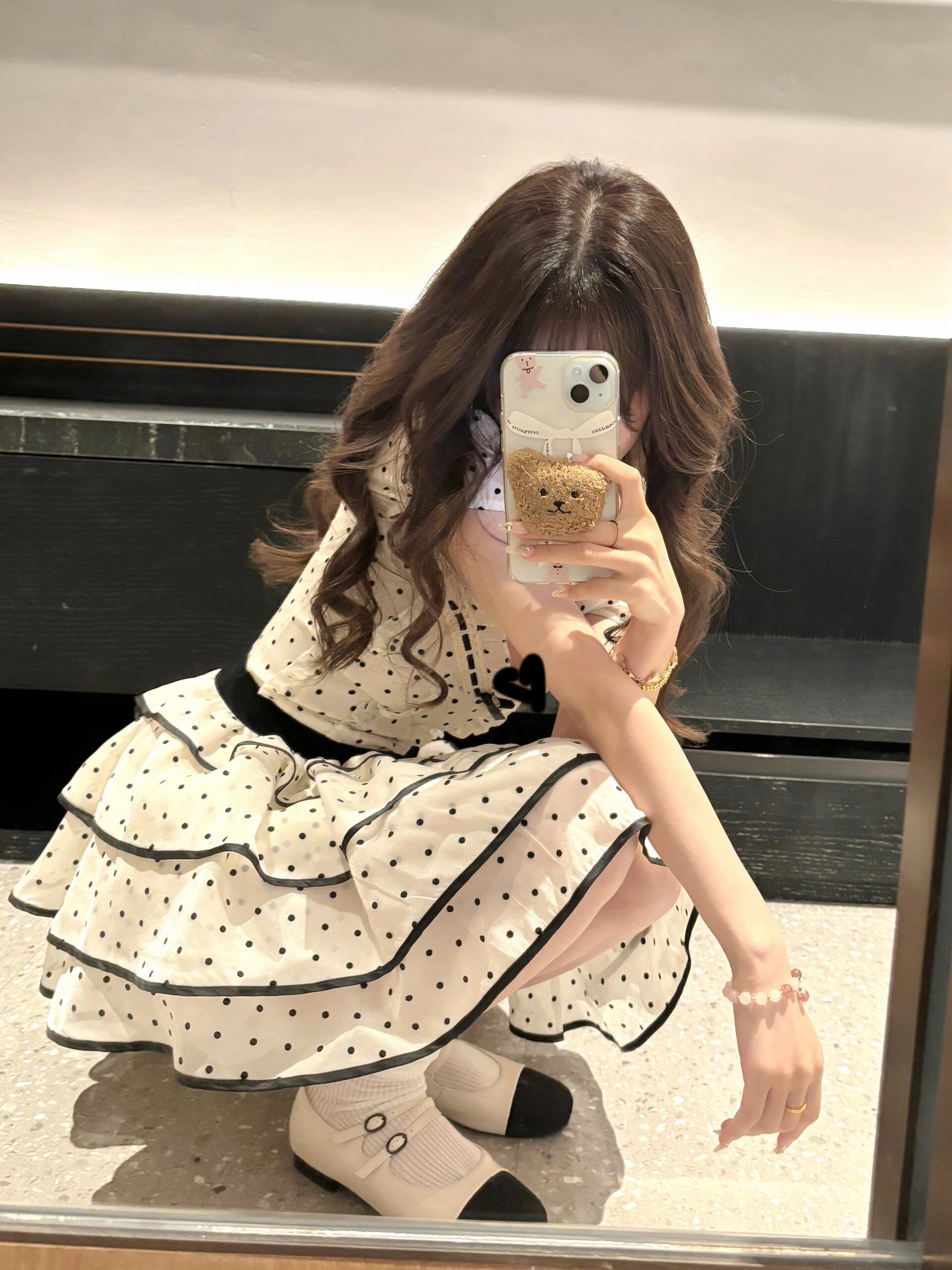 夏用スクエアネックパフスリーブ水玉ドレス甘くて可愛いフレンチプリンセスケーキパフスカート