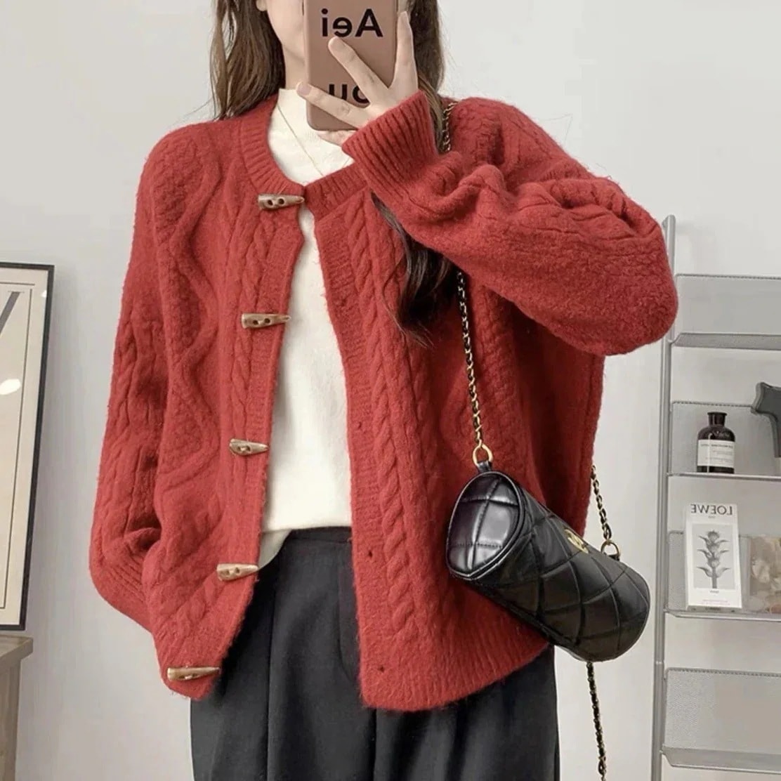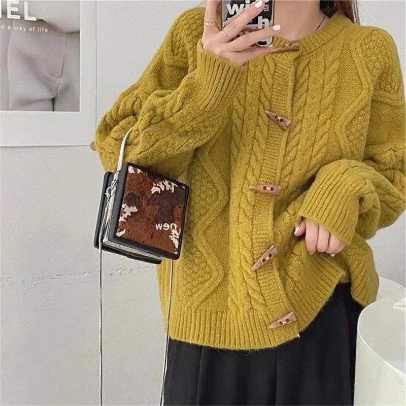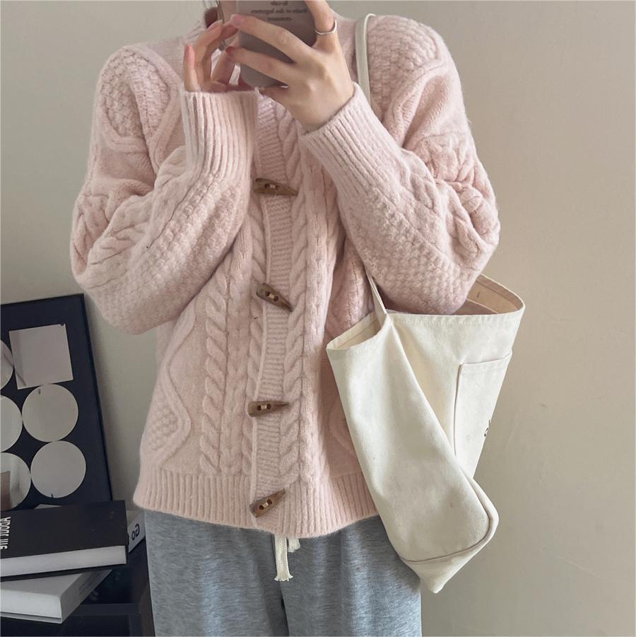 ニットカーディガンアウターなリブニットントップ女性秋冬緩いラウンドネックジャンパーコート
