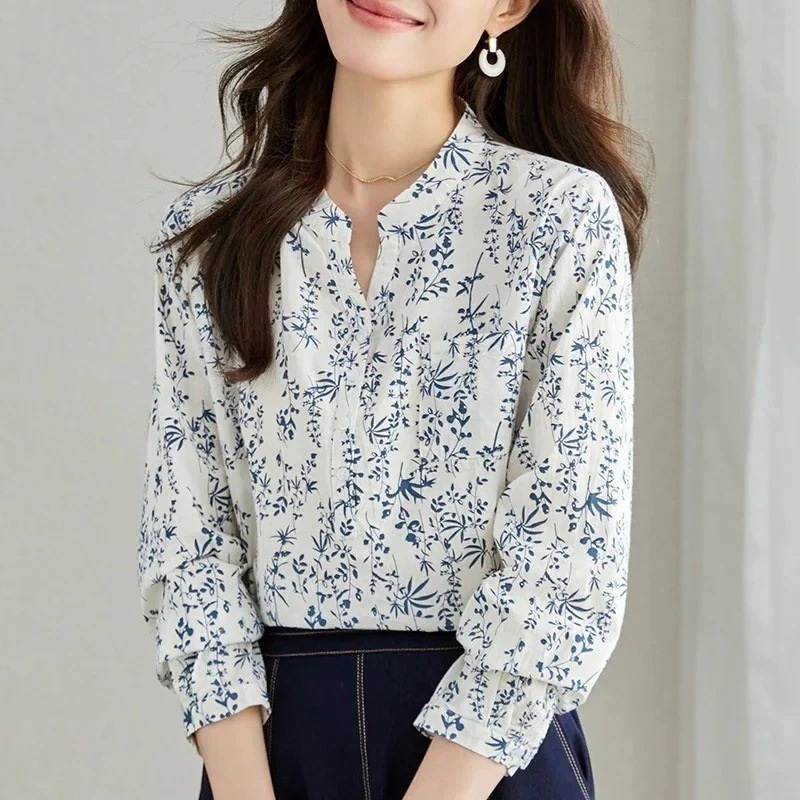 花柄シャツファッション 七分袖サマーコットントップス 今っぽシアーシャツ レディース 長袖 ブラウス レディース シャツ