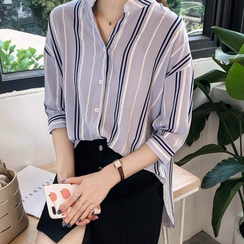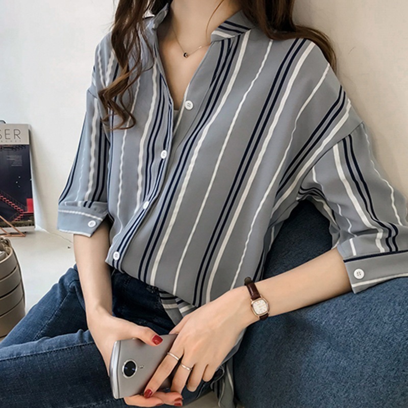 今っぽシアーシャツ 春夏 ゆったり 大きいサイズ ボーダーシャツ レディース 七分袖 Vネック トップス ボトムス シャツ長袖 ブラウス レディース