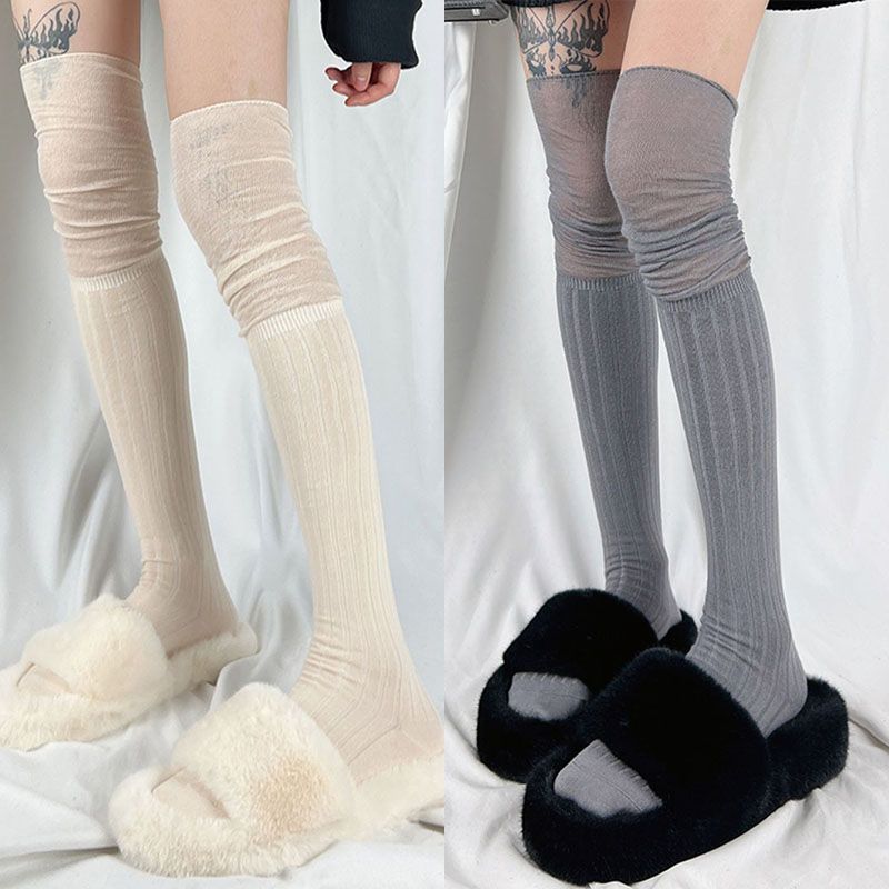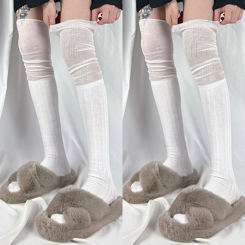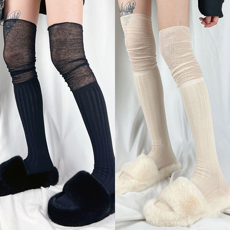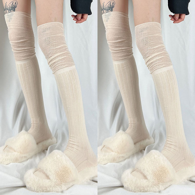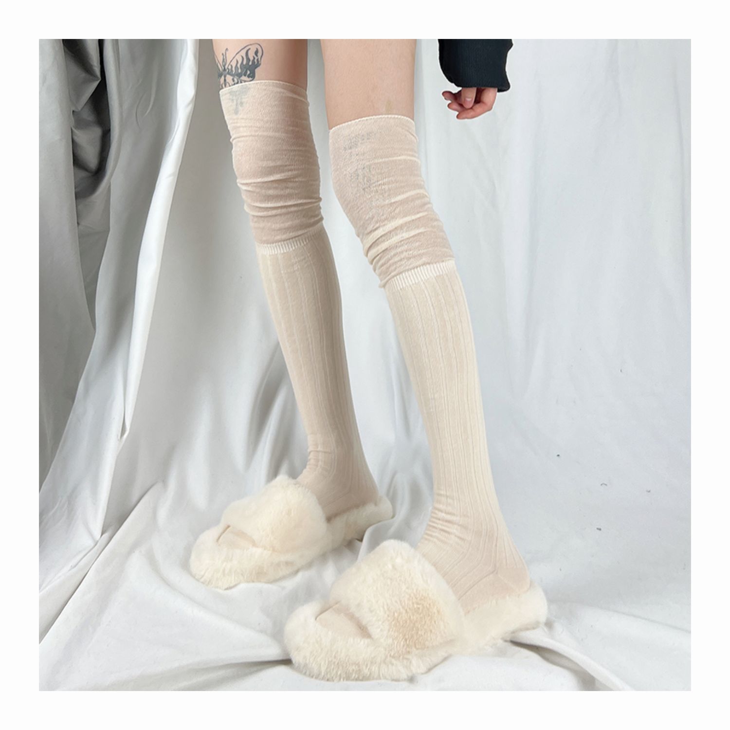 スプライシングニーソックス レディース 春夏 ベージュ 日本製 ストッキング 秋 乳白 ハイモモ 春秋 パイルソックス