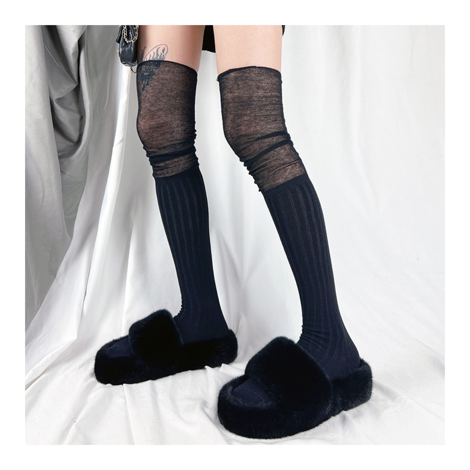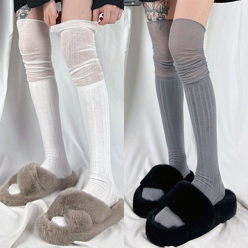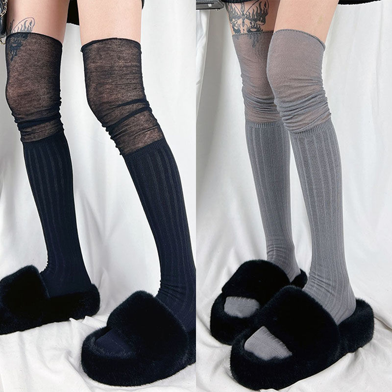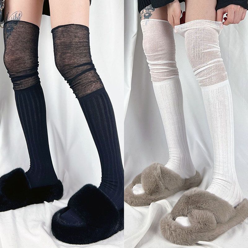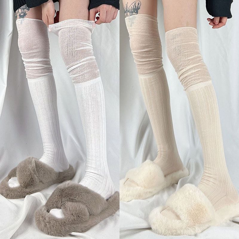 スプライシングニーソックス レディース 春夏 ベージュ 日本製 ストッキング 秋 乳白 ハイモモ 春秋 パイルソックス