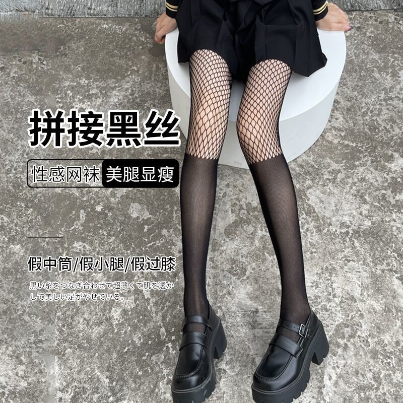 網タイツフェイクハイブインセクシーステッチ黒シルク細脚中空春夏