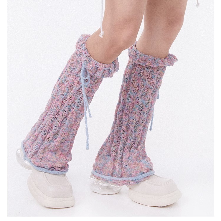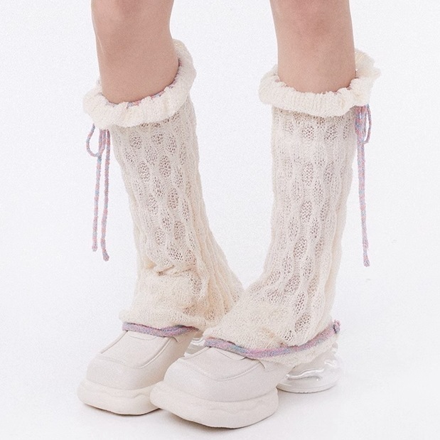 レースアップ中空4色サマードーパミンドライ快適レッグスリーブスウィートウィンドパイルソックス