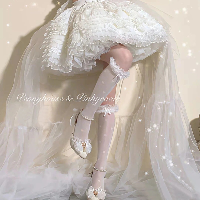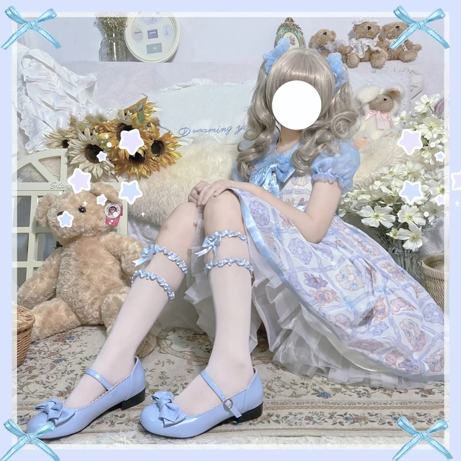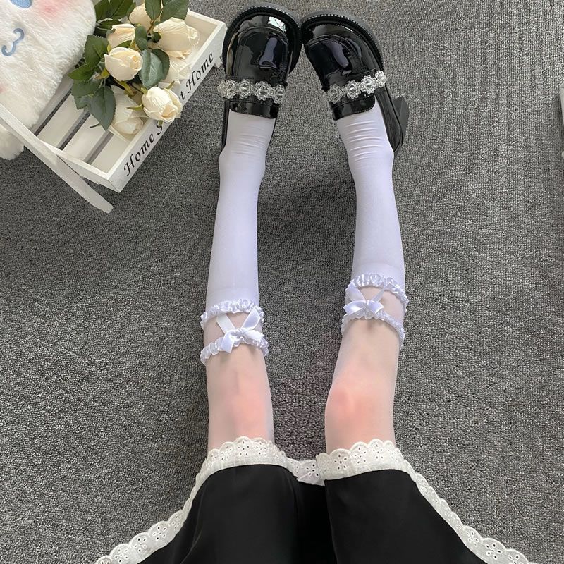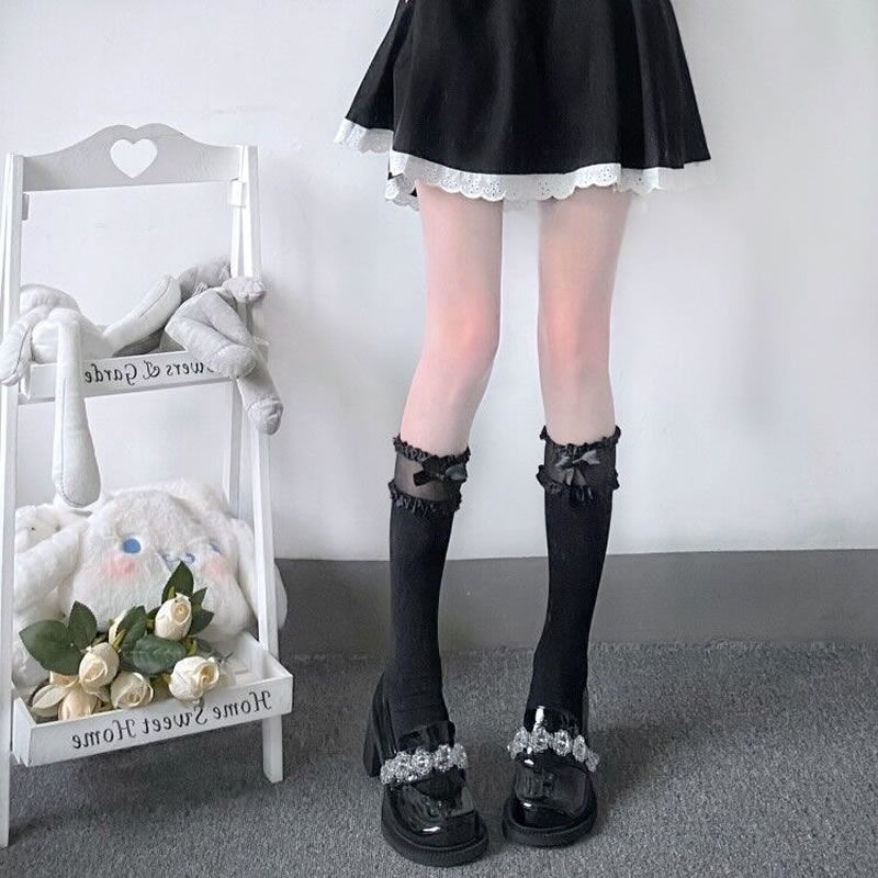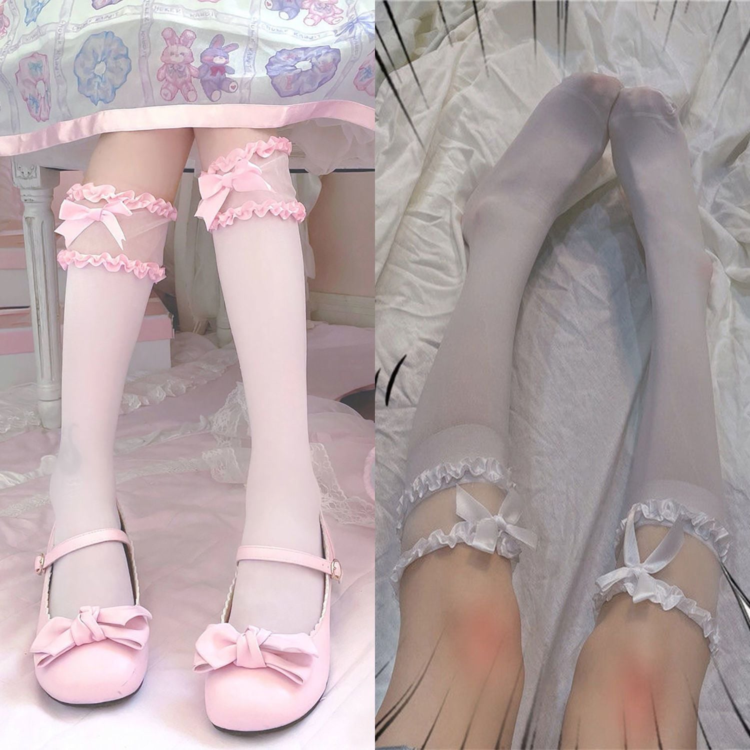 日本製ロリータピンクちょう結び水玉レースショートミッドブふくらはぎソックス女の子夏薄部