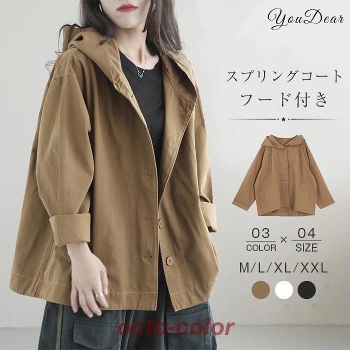 トレンチ フード付き テーラードジャケット 40代 レディース 大人 ミドル丈 きれいめ 50代 スプリングコート アウター 30代 アウター トレンチコート 無地 マウンテンパーカー ゆったり 通勤