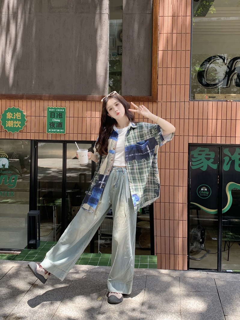 韓国風デザイン感小人数ゆったり半袖シャツ女2025夏新作個性的なプリントの開襟トップコート