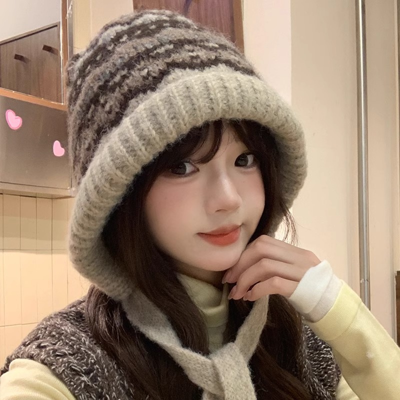 2024ビッグヘッド円周レディースバラクラバシーズン帽子ニットキャップフェアアイルスタイルビーニー帽子耳あてイヤーマフラー