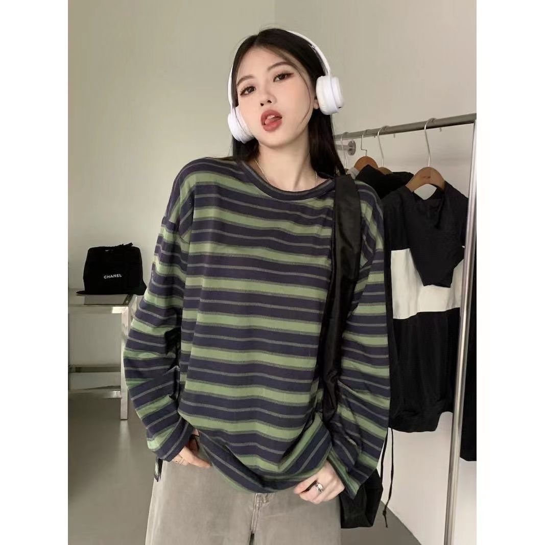 2025 早春 新作 韓国版 ルーズ ボーダー長袖Tシャツ 薄手のトップス Tシャツ ティーシャツ ロングTシャツ トップス 半袖 tシャツ レディース レディースファッション tシャツ 韓国