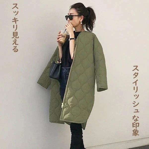 韩国 中綿ジャケッ 綿 キルティングコート ミリタリージャケット ノーカラー ロング 黒 レディースアウターベスト