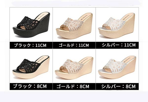 厚底サンダル 軽量 ウェッジソール おしゃれ ミュール サンダル 厚底 歩きやすい 痛くない キラキラ かかとなし つっかけ 小さいサイズ 大きいサイズ ヒール11センチ 安定感 クッション 美脚 夏