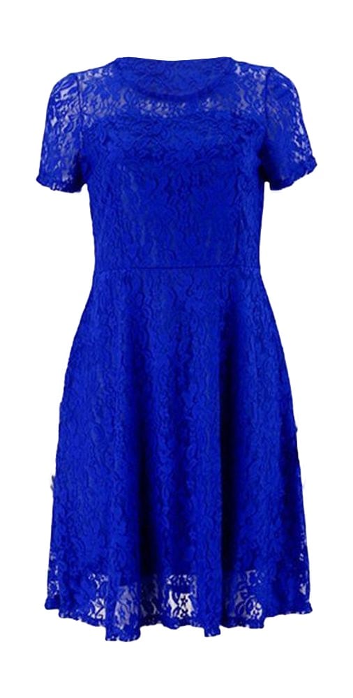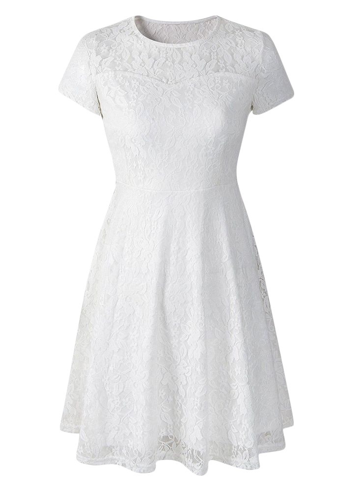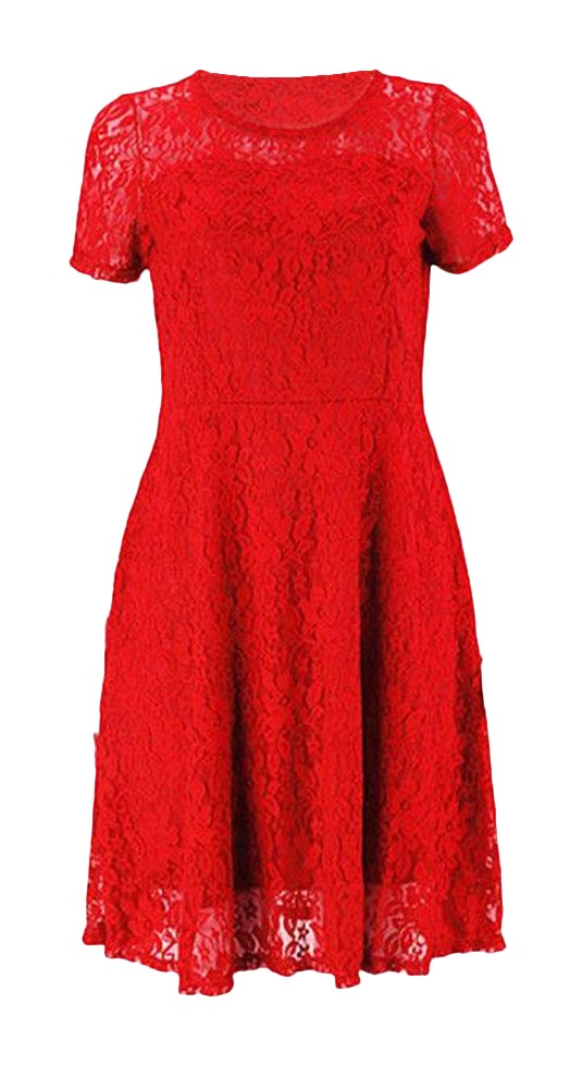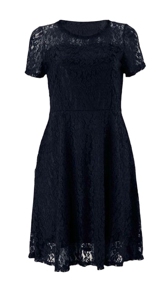 ワンピース ラウンドネック 半袖 ミディアム丈 ミディ丈 レディース Aライン フレアスカート レース シースルー 透け感 パーティー お呼ばれ 単色