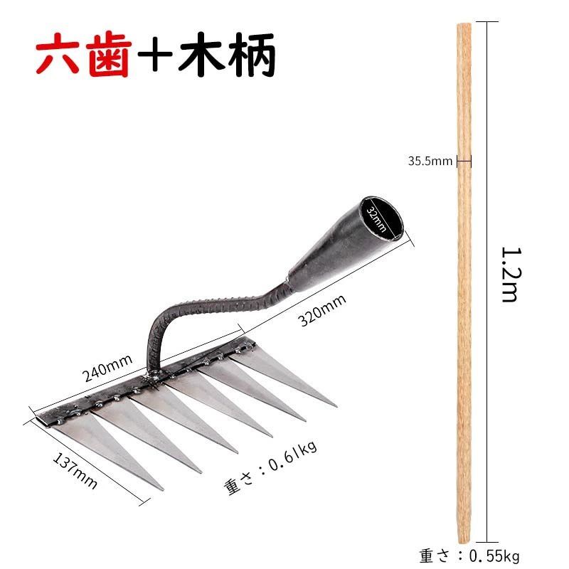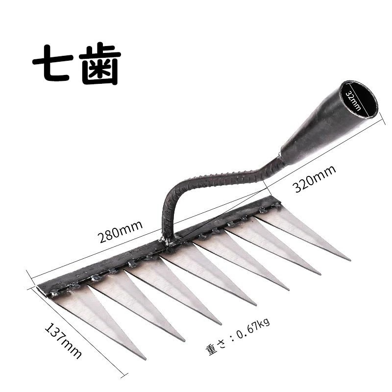 草刈りレーキ ガーデンレーキ ステンレス 4/5/6/7本爪 4/5/6/7歯 熊手 草刈り 多用途 軽量 金属炭素鋼レーキ 多用途 草削り 雑草取り 雑草抜き 雑草対策 草取り道具 ガーデニング 除
