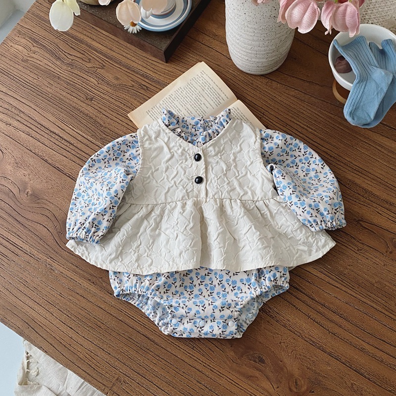 秋のベビー版花柄長袖バッグおしりベストスカートセット女性ベビー洋風2点セット