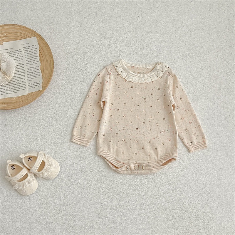 春と秋の女の子の赤ちゃんのカラーコットンレース襟ニット毛糸つなぎハーベスト