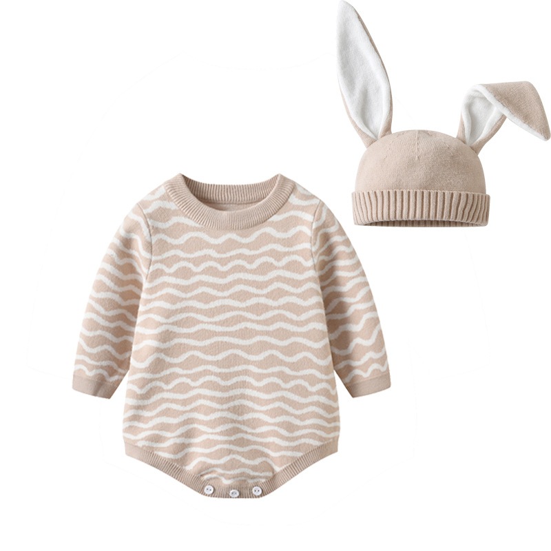ベビーバッグおしりウェア秋冬ベビーニットハーベストウサギ耳帽子波長袖セーター