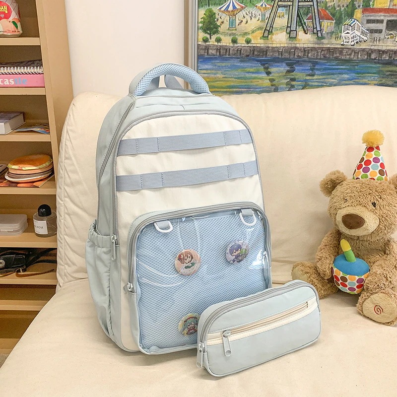 2025 新作 取り外し可能なペンバッグ スクールバッグ 透明ポケット かわいい ペインバッグ シンプル 無地 女性 学生 ショルダーバッグ