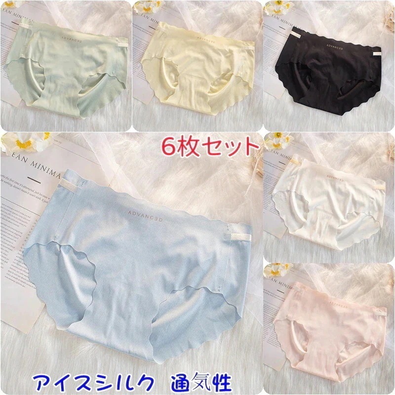ミッドウエスト【6枚セット】2024春夏新作涼感アイスシルク可愛いセット下着   セット売りショーツ セット売りショーツ補正下着韓国ファッション アイスシルク シームレス スイート 通気性 夏 薄手 ミッドウエスト