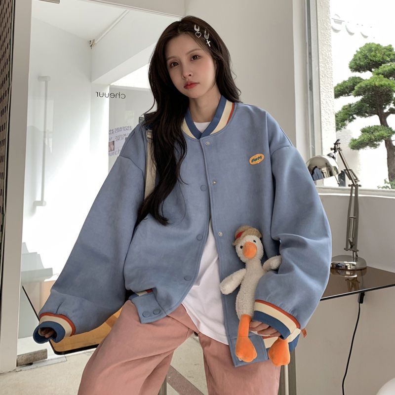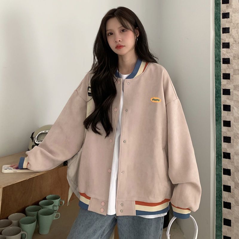 冬アウター おしゃれ コントラストカラー カジュアル 美しい外観 ベースボールジャージ ゆったり 質感 ニッチデザイン トップス ジャケット ムートンファッション 母の日