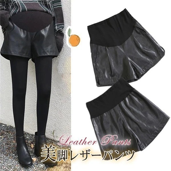【ins大人気】即納 マタニティパンツ レザーパンツ 妊婦服 レディース ショートパンツ 短パン ハイウエスト 産前産後