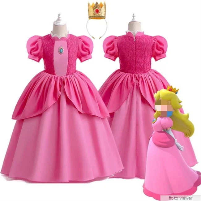 マリオ ピーチ姫 コスプレ コスム 子供 キッズ 女の子 ワンピース お洋服 コスプレ服 コスプレ衣装 仮装 変装 演出服 イベント ハロウィン 学園祭