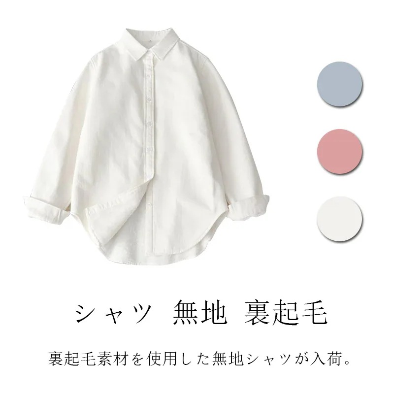 シャツ 無地 裏起毛 レディース 厚手 長袖 暖かい 冬用 冬服 裏起毛 厚手 防寒 対策 インナー レイヤード シンプル イージー 3色入り 20代 30代 通学 通勤 カジュアル 裏ボア 白 ピン