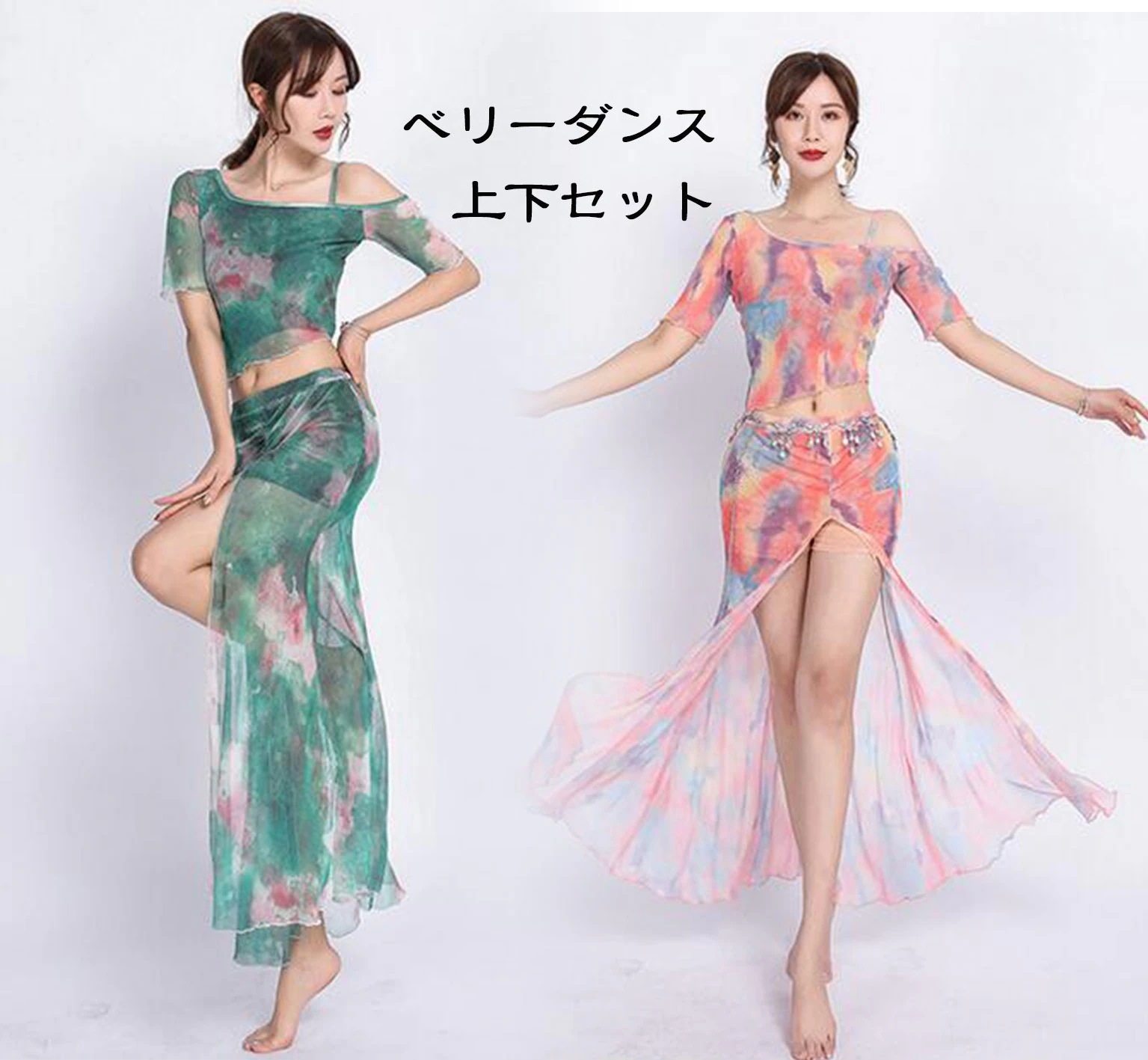 シースルー生地ダンスウェア ベリーダンス衣装 レディース ステージ衣装 半袖へそ出しトップス