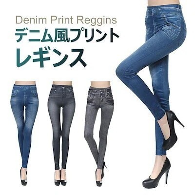 デニム風プリントレギンス 美脚 春 夏 秋 ストレッチ レディース 20代 30代 40代 レギパン
