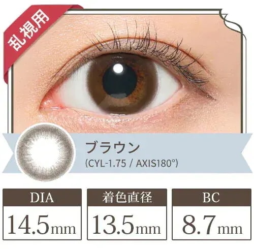 3 5aka*** 2025.12.17 カラー(乱視度数CYL 乱視軸AXIS):ムースブラウン(CYL-2.25 AXIS180°) 度数:-4.50オプション : カラー(乱視度数CYL/乱視軸AXIS):ムースブラウン(CYL-2.25/AXIS180°) / 度数:-4.50 肌タイプ : 混合肌 肌トーン : ブルベ 肌の悩み : ニキビ・肌荒れ, 毛穴