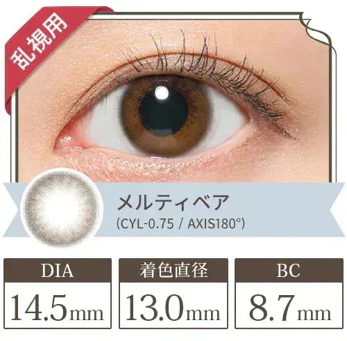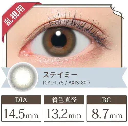 5 5Mir*** 2025.06.19 カラー(乱視度数CYL 乱視軸AXIS):ステイミー(CYL-0.75 AXIS180°) 度数:-2.50(+210円)オプション : カラー(乱視度数CYL/乱視軸AXIS):ステイミー(CYL-0.75/AXIS180°) / 度数:-2.50(+210円) 肌タイプ : 混合肌 肌トーン : イエベ 肌の悩み : 毛穴, くすみ・色むら, 乾燥, しわ・たるみ, シミ
