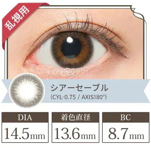 4 5t-a*** 2025.09.09 カラー(乱視度数CYL 乱視軸AXIS):シアーセーブル(CYL-2.25 AXIS180°) 度数:-4.00(+210円)オプション : カラー(乱視度数CYL/乱視軸AXIS):シアーセーブル(CYL-2.25/AXIS180°) / 度数:-4.00(+210円) 肌タイプ : 乾燥肌 肌トーン : イエベ 肌の悩み : ニキビ・肌荒れ, 毛穴, 乾燥, シミ