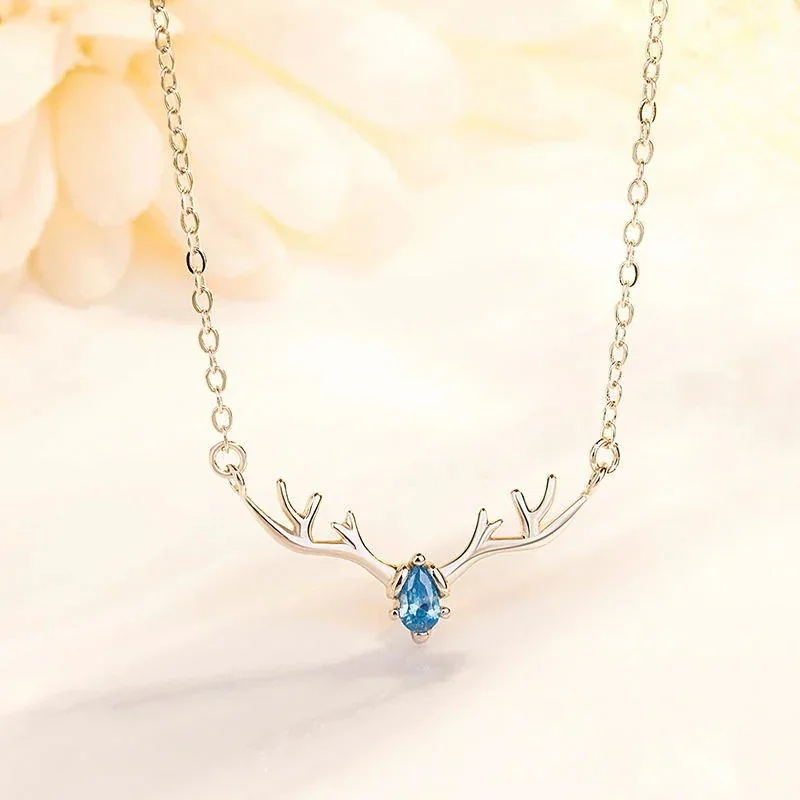 鹿はクリスマスプレゼントの角のネックレスの女性の鎖骨チェーンシンプルエルク森システムのネックレス韓国語バージョンを持っている