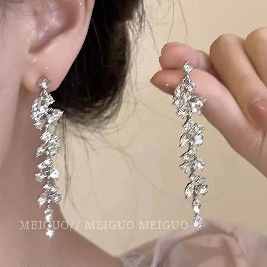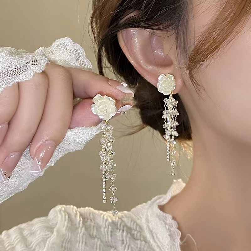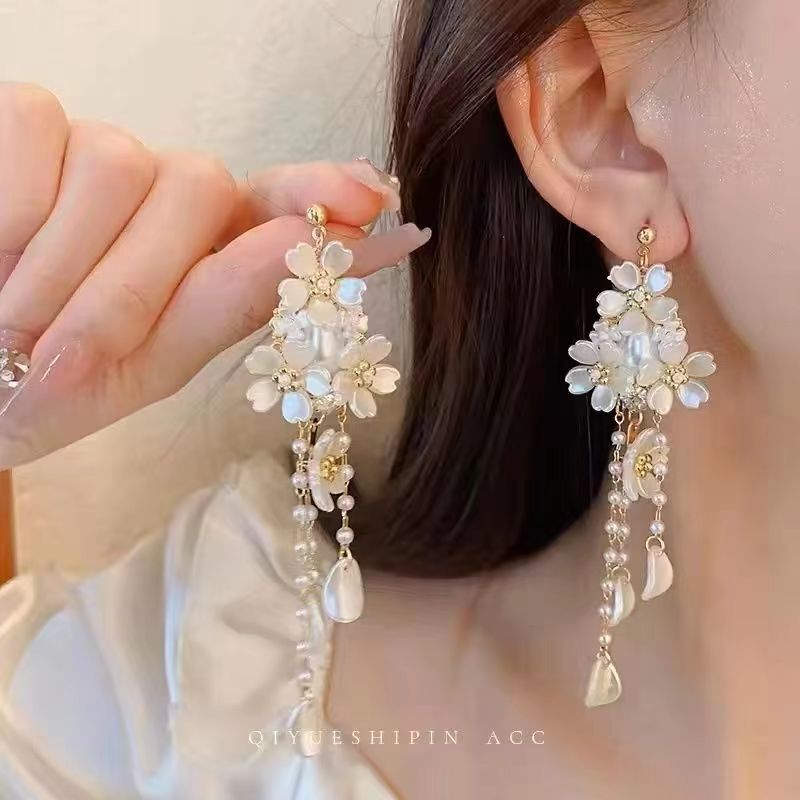 クエアラウンドフェイスパールロングタッセルイヤリングメスイヤリングフレンチエレガントライトラグジュアリーニッチタッセルイヤリング