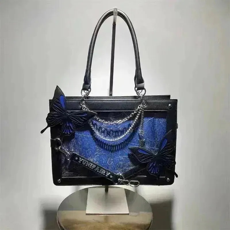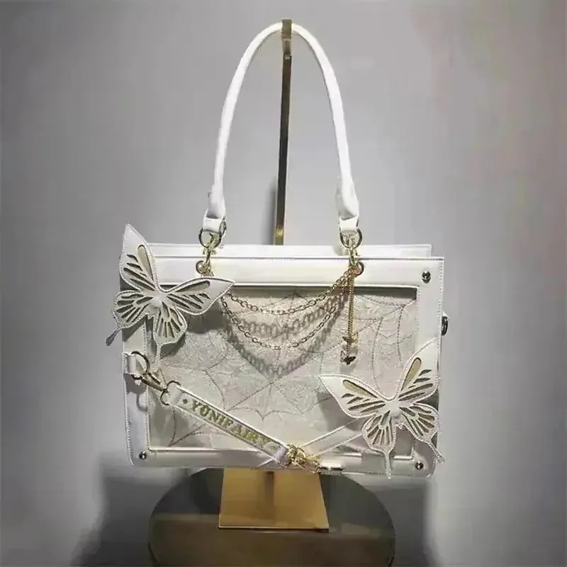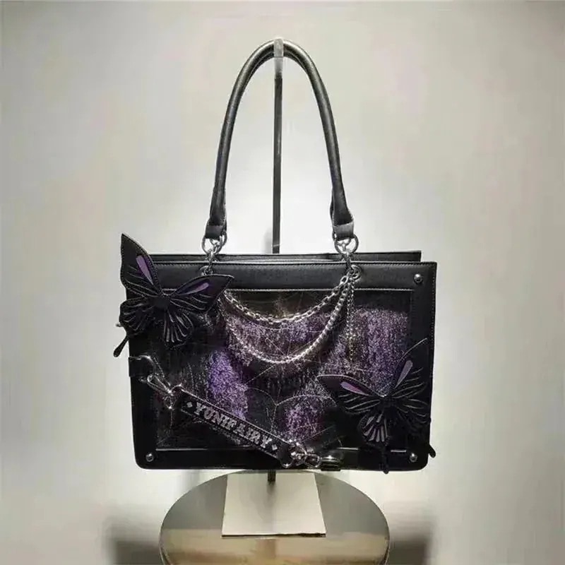 痛バッグ ロリータ ショルダーバッグ 黯黑 蝶々 大容量トートバッグ ガ-リッシュ スクバ 韓風 ショルダーバッグ