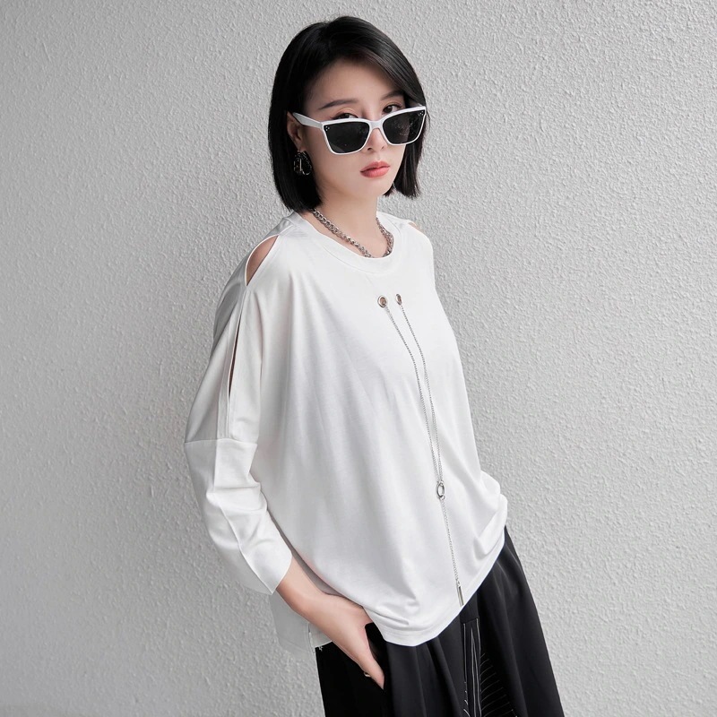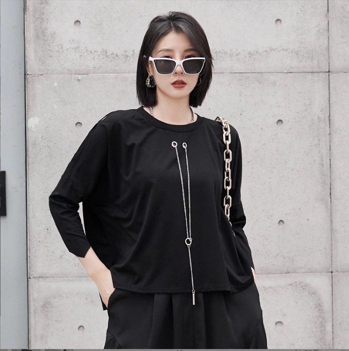 欧米のtシャツの女性のボトムシャツ 夏の新モデルの7分袖ゆったり短い大きいサイズ 上着